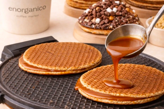 Nuestros smashwaffles elaborados al momento, con ingredientes holandeses de primera calidad, cuidadosamente medidos para lograr la textura perfecta.